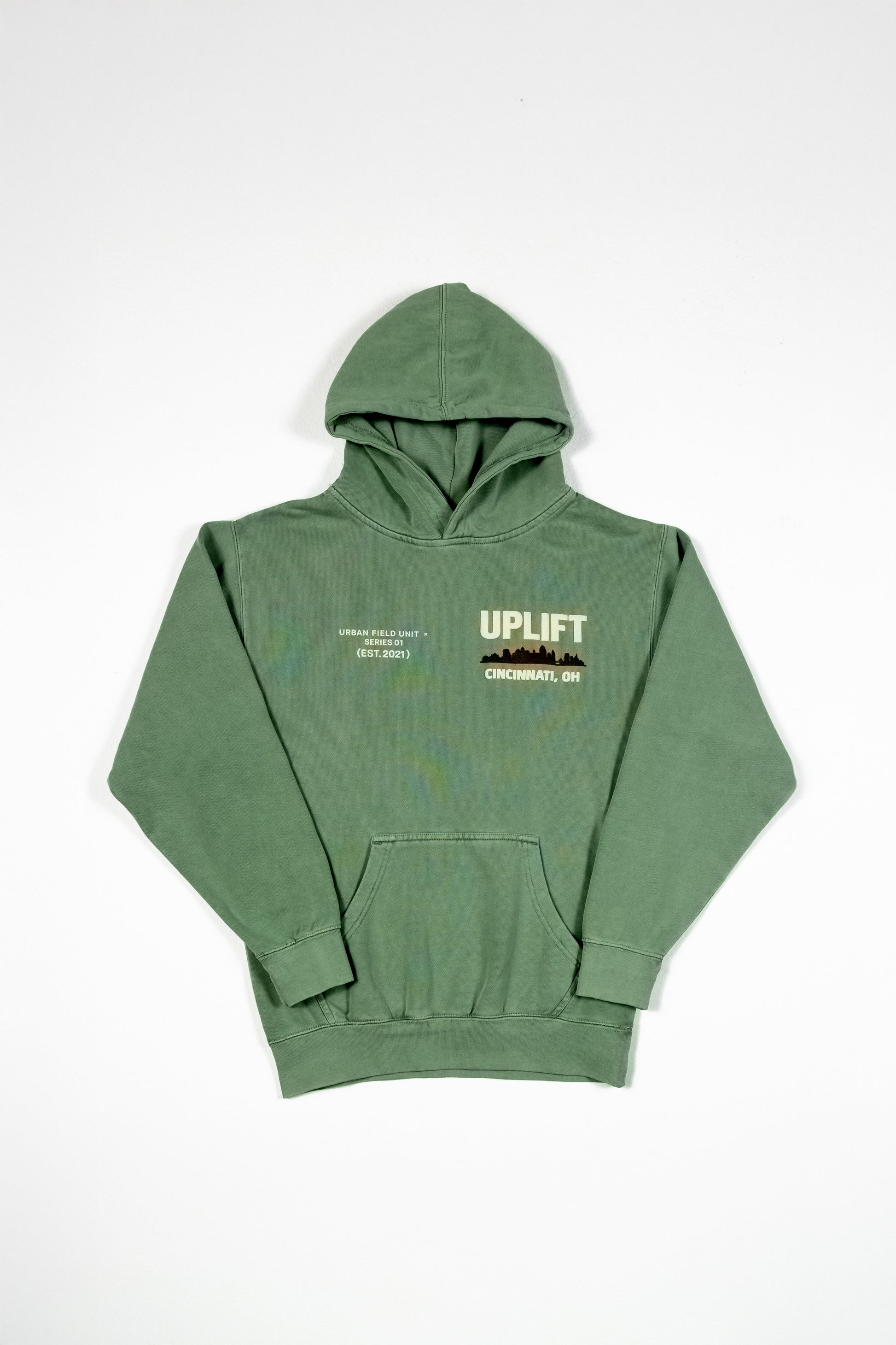 Rep the Ohio skyline on heavyweight fleece. The sage garment dye gives it a vintage, lived-in look.