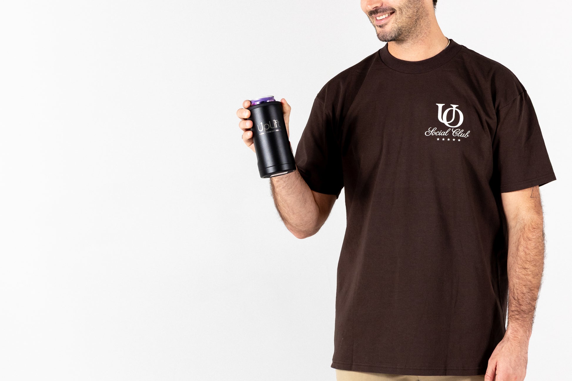 The Social Club tee in a warm java shade. A versatile graphic piece for daily rotation.